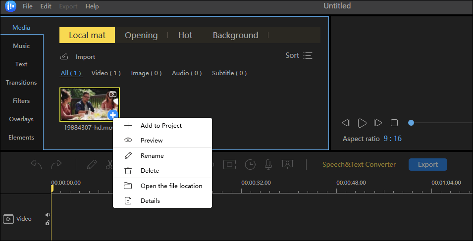 - Step 2. Add the imported file to the track by choosing the "Add to Project" option, or you can drag and place the video to the track.